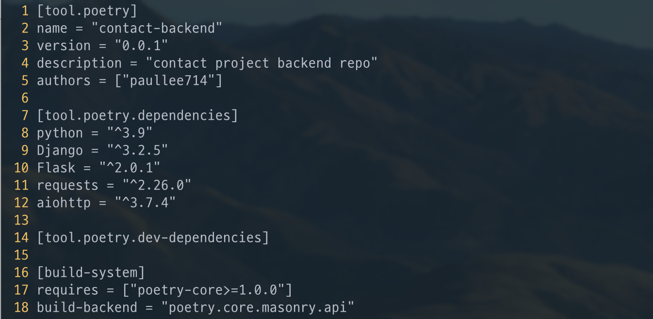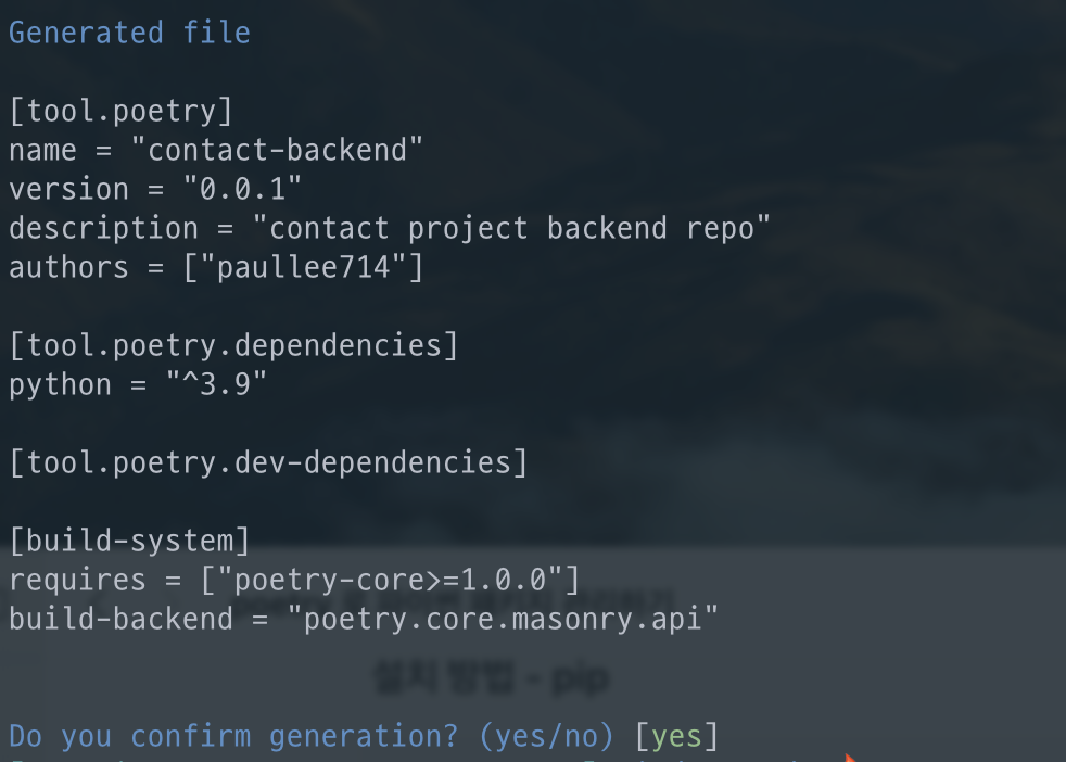 그럼 pyproject.toml 파일이 생성되면서 환경설정이 종료가 됩니다